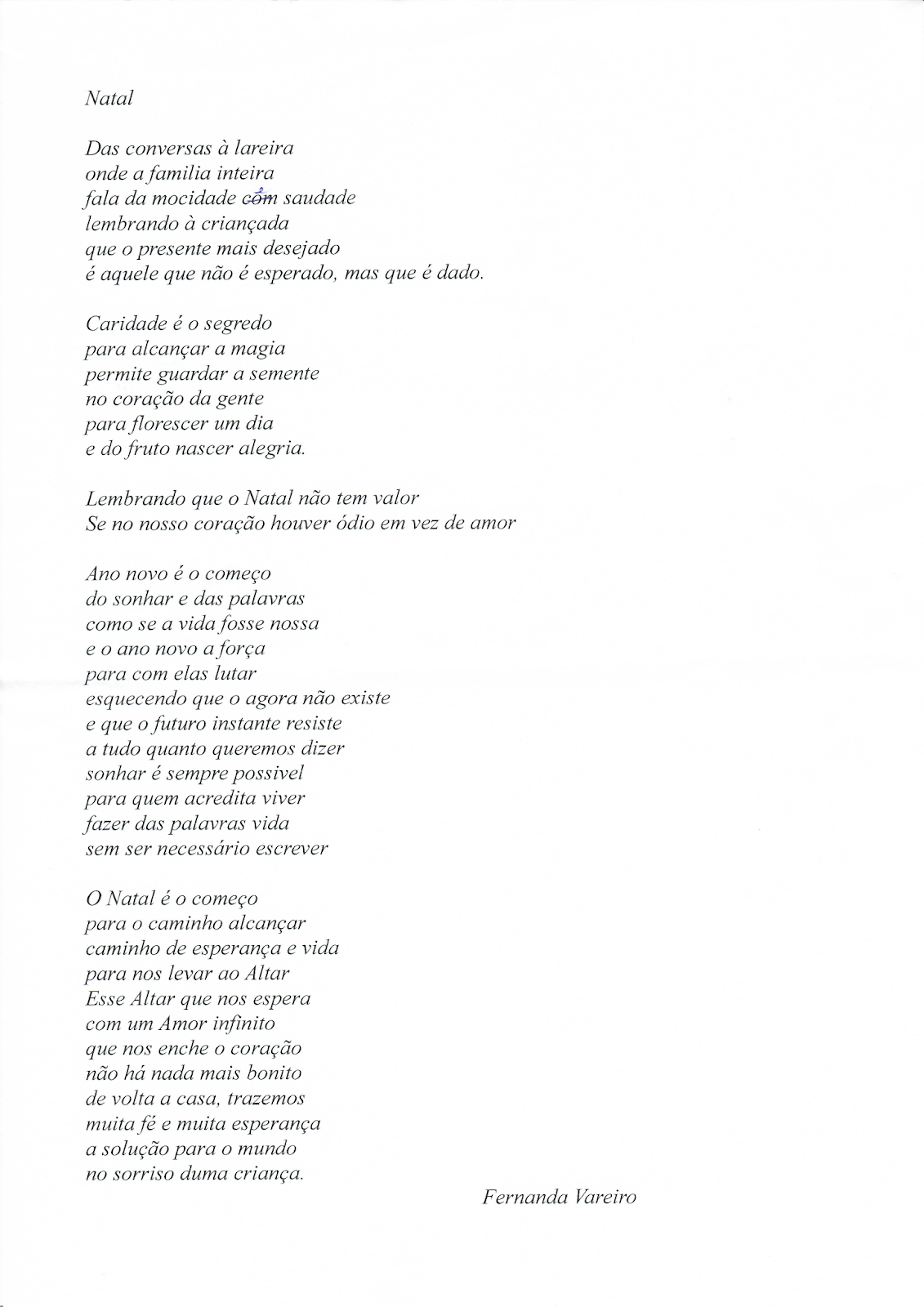 Foi solicitado no fim do passado ano lectivo que os alunos trouxessem um poema que falasse sobre o Natal/Ano Novo. Deixo-vos um desses poe...